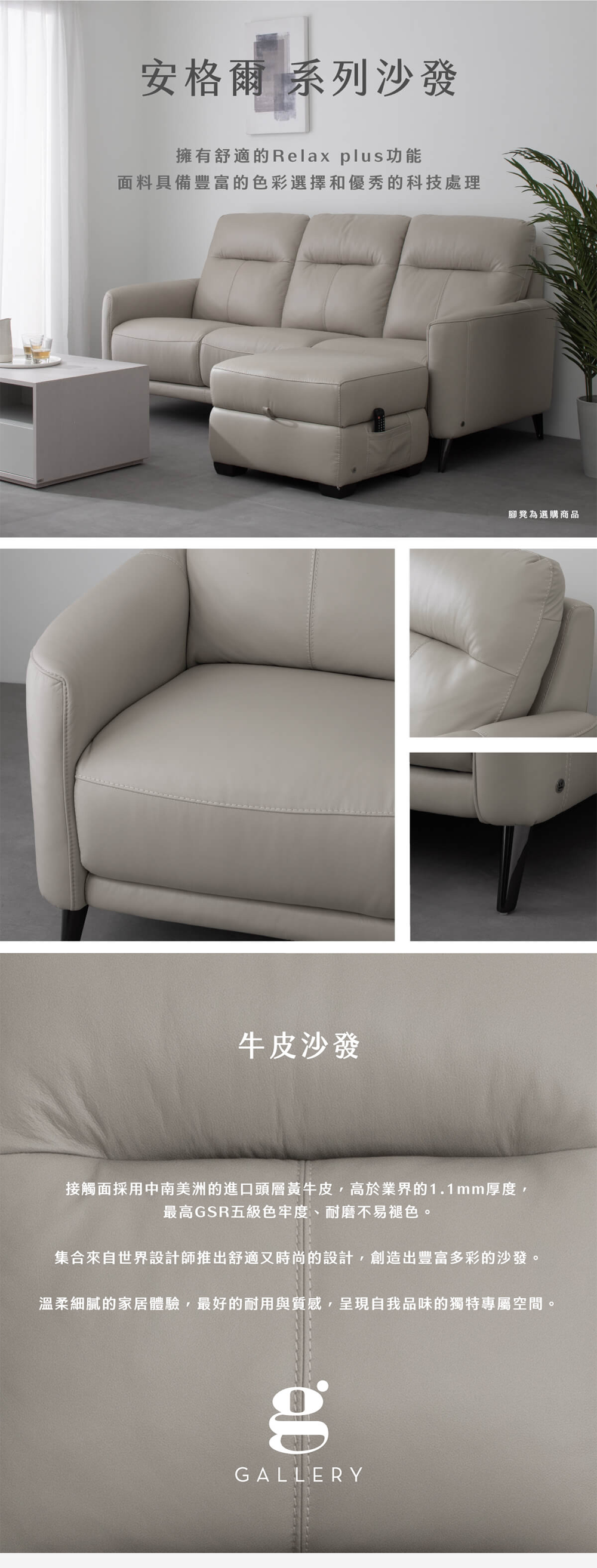 人體工學高背設計結合頂級進口頭層牛皮,帶來全方位的包覆支撐,打造極致舒適的客廳時光!