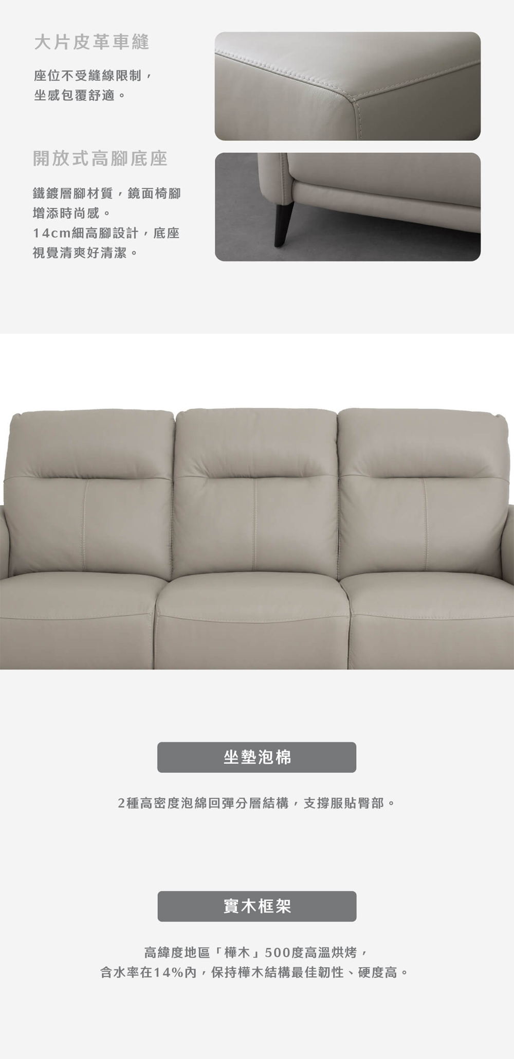 ・ 堅固耐用俄羅斯樺木!實木框架經500度高溫烘烤,維持最佳韌性與硬度,給您最安心的支撐。
