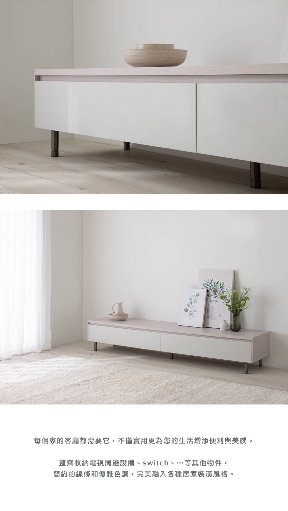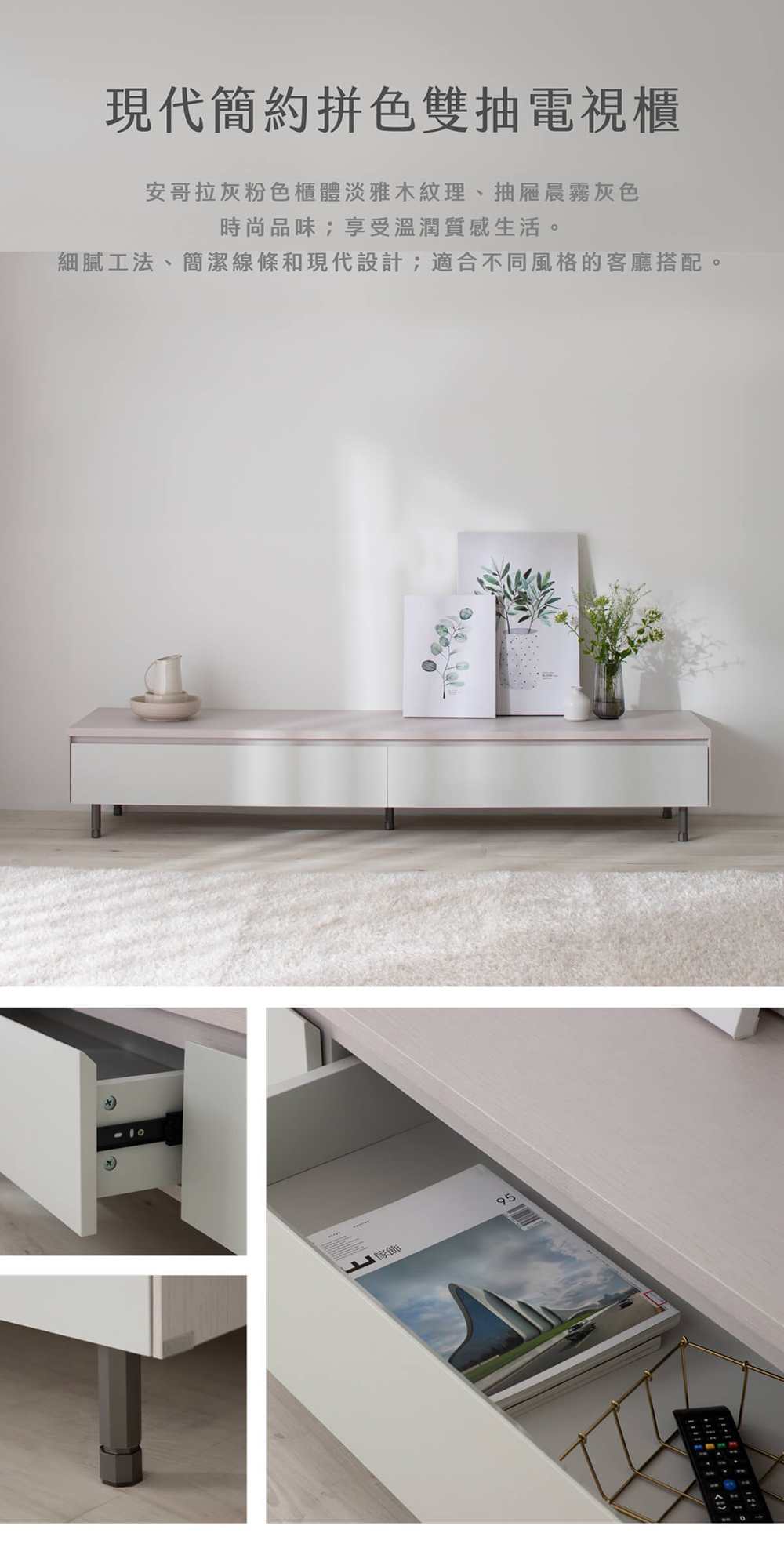 • 大容量分區收納:雙抽屜設計有效分類電視周邊、遊戲機等物品,維持客廳整齊有序。