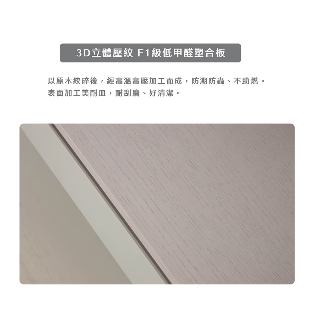 • F1級低甲醛板材:高標準環保材質,無刺鼻氣味,使用更安心耐久。
