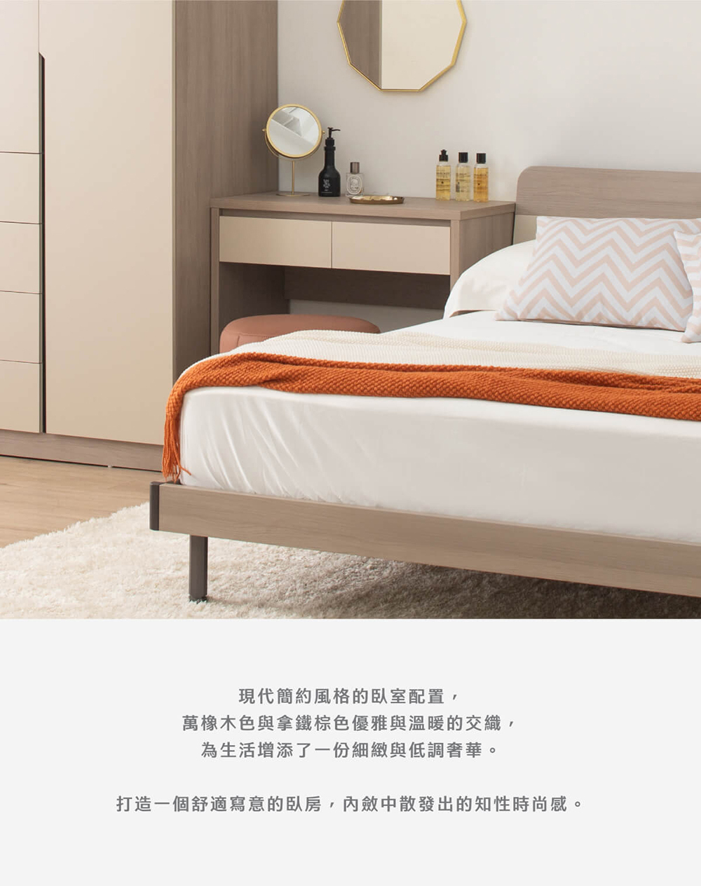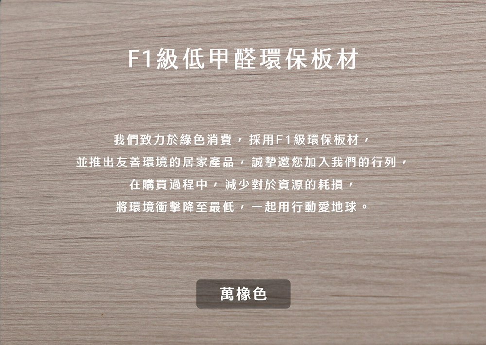 • F1級環保板材:低甲醛材質搭配 3D 壓紋,耐磨好清潔。