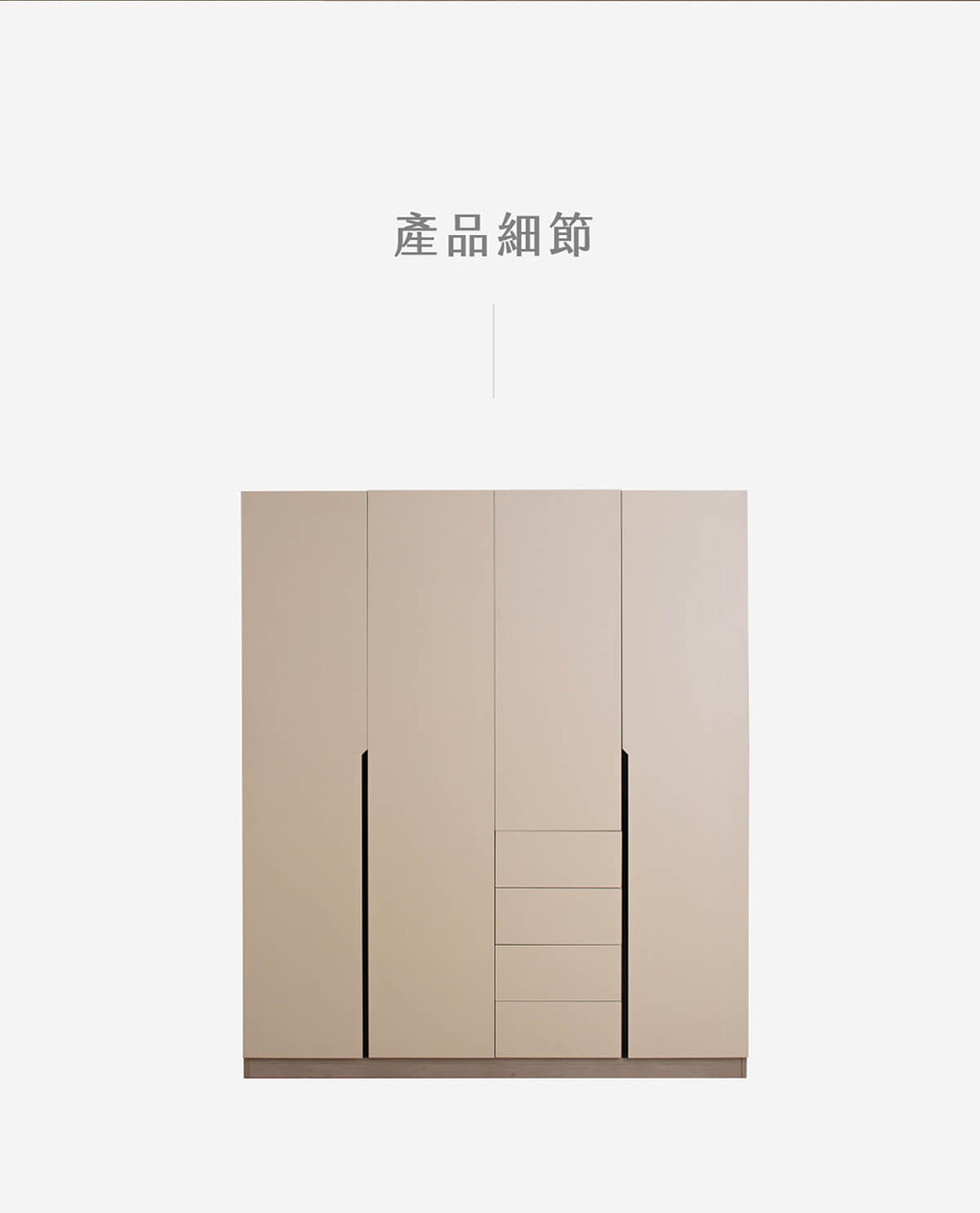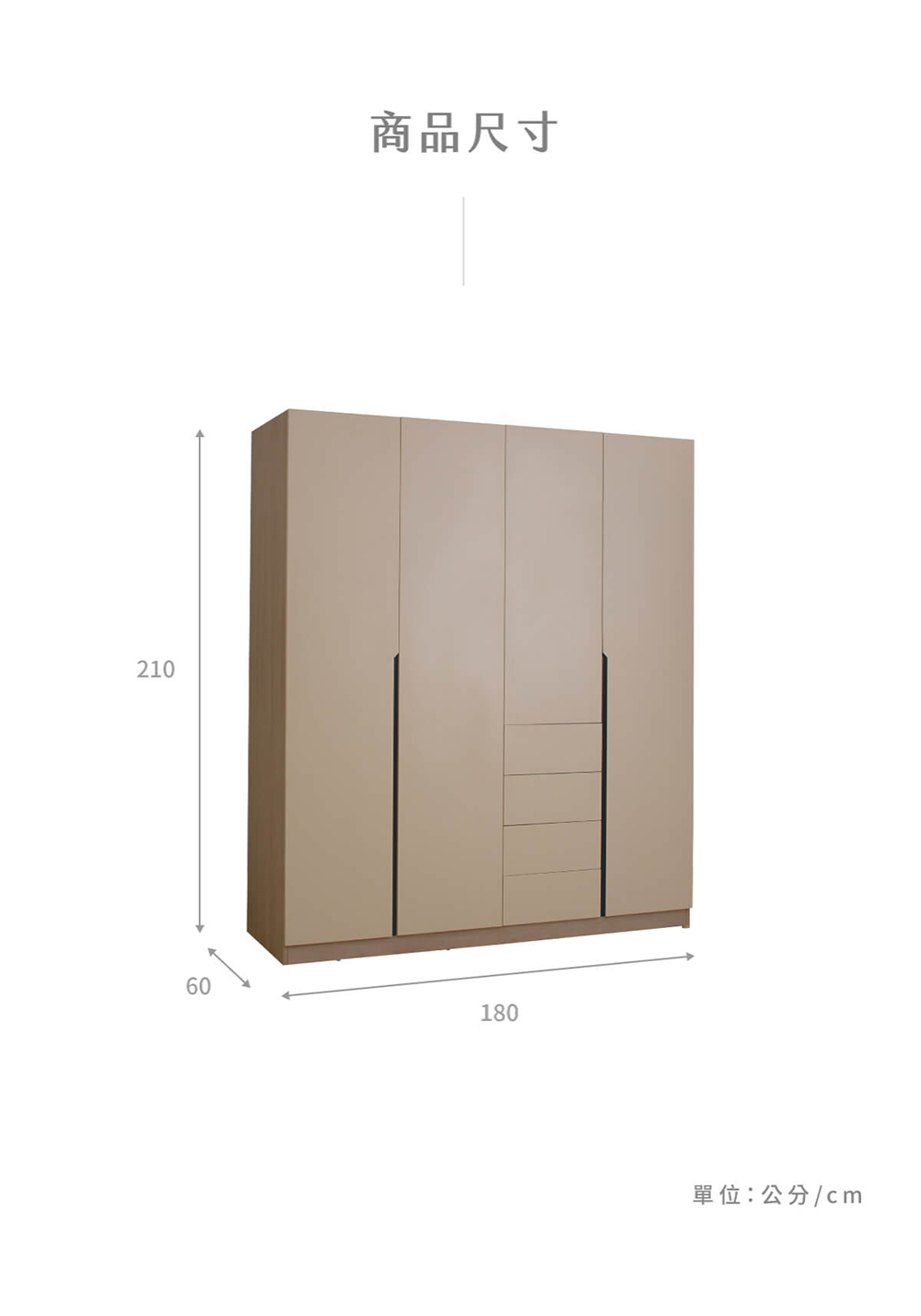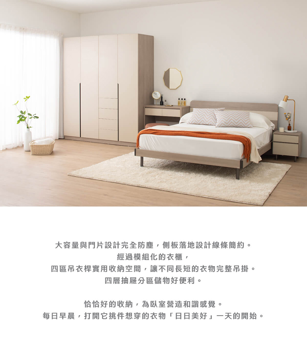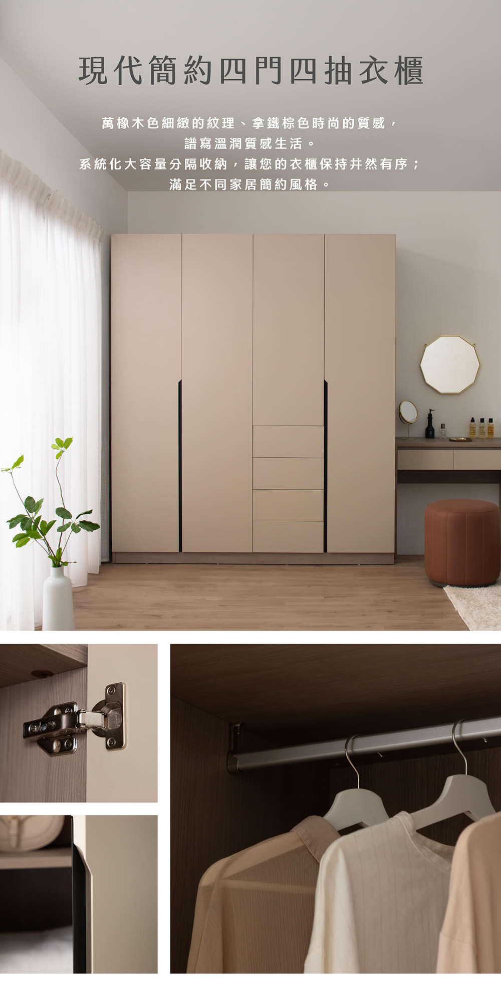 • 系統化收納:四門搭配四抽設計,大容量分區收納,讓衣物井然有序不凌亂。