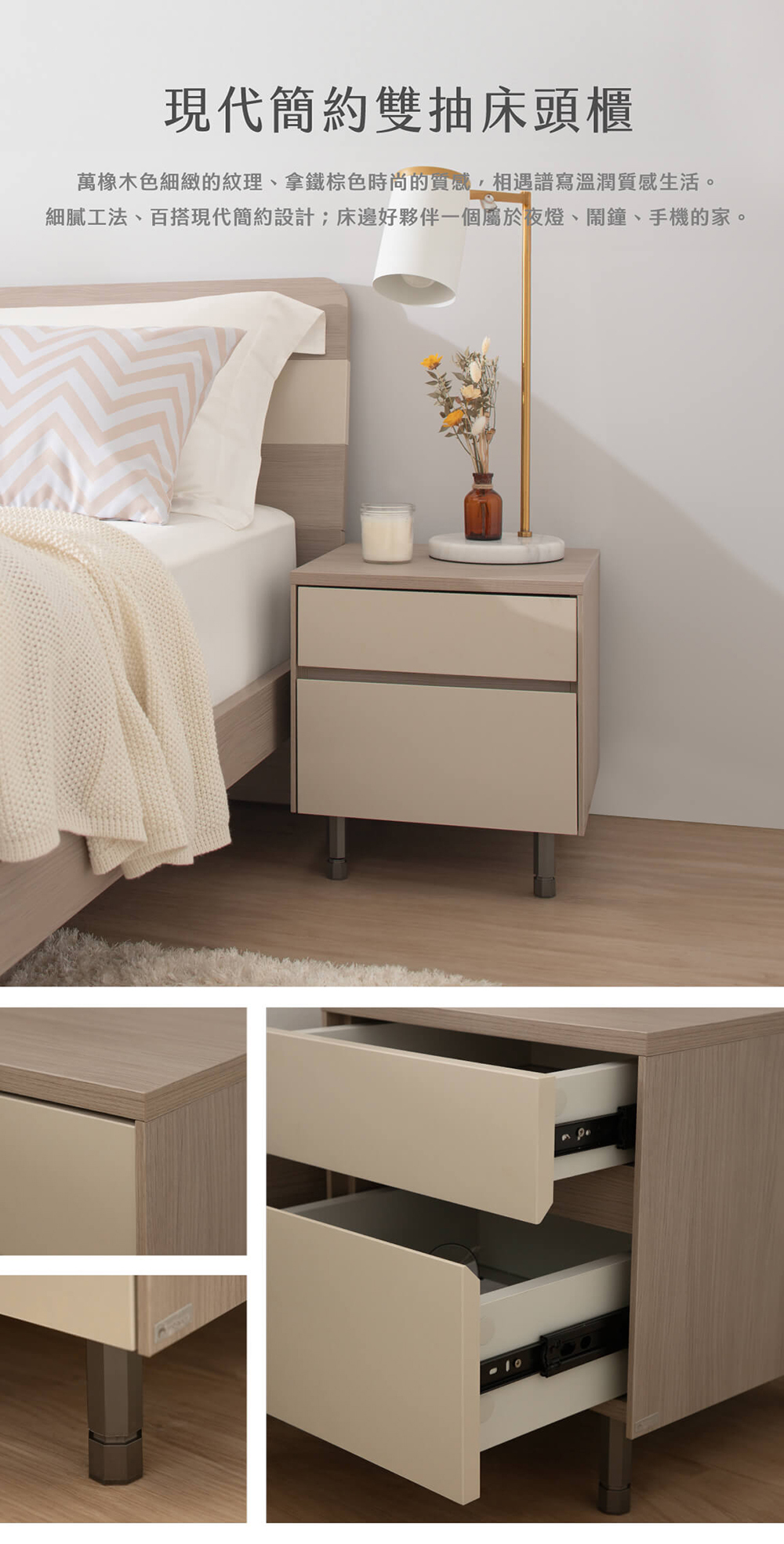 • 雙抽收納空間:輕鬆整理手機、書籍與日常用品。