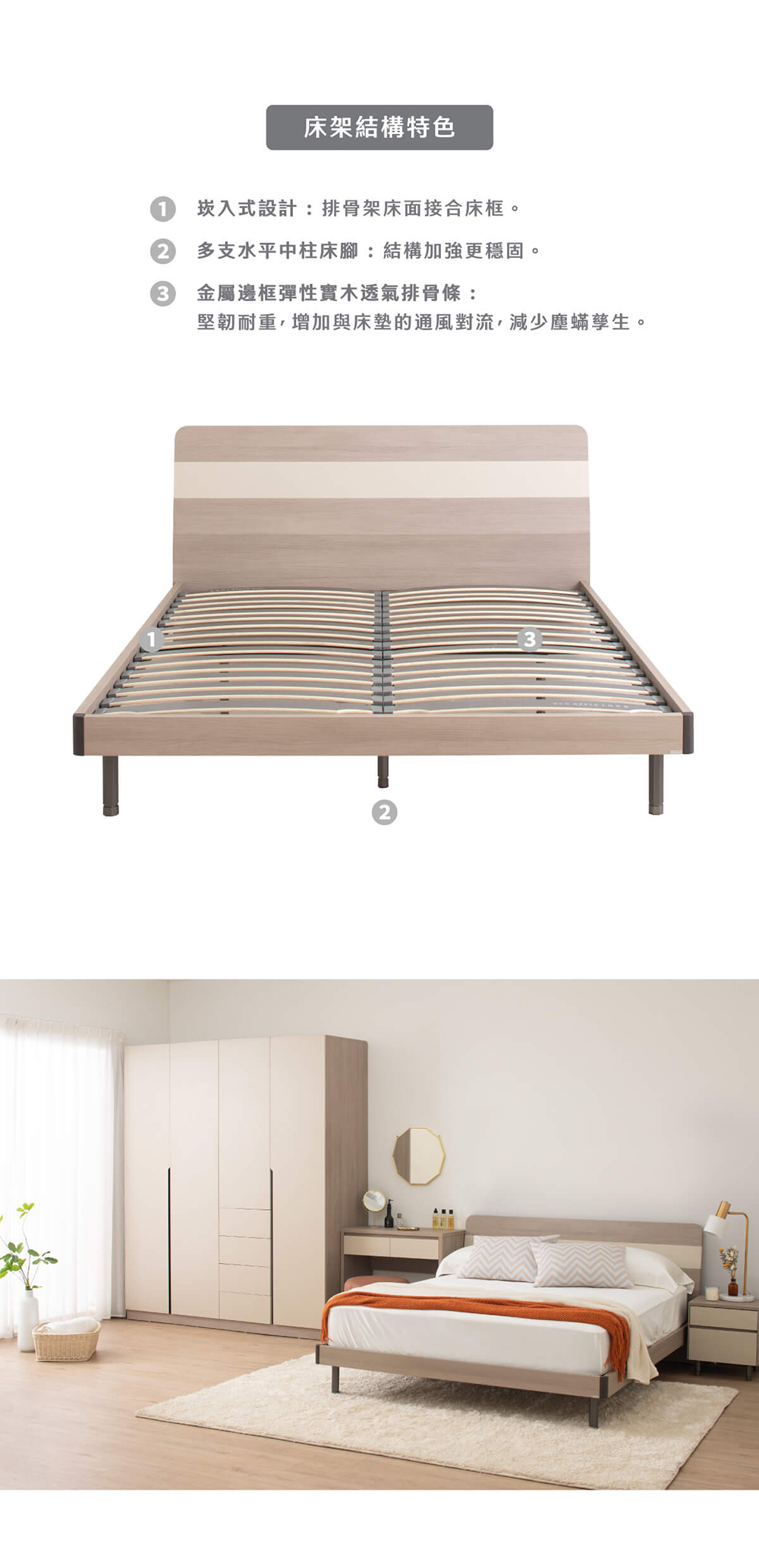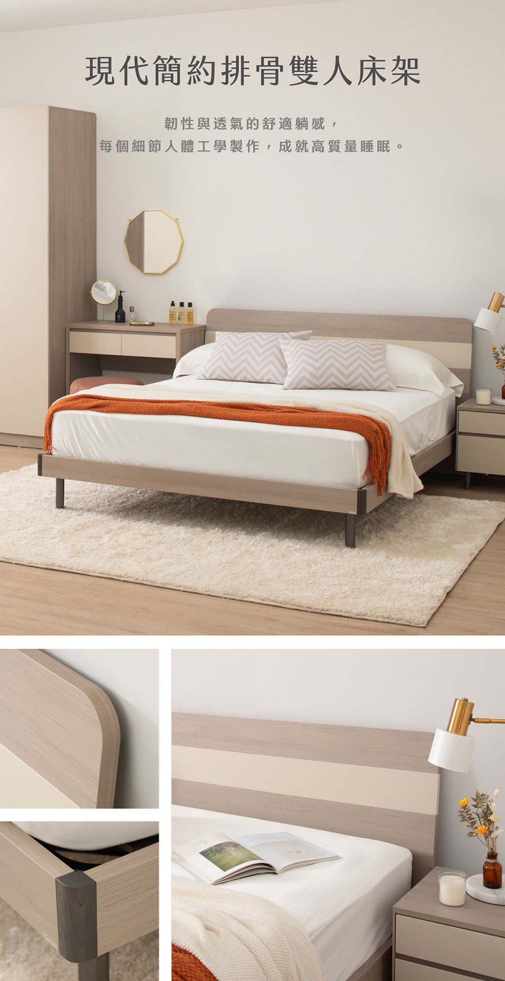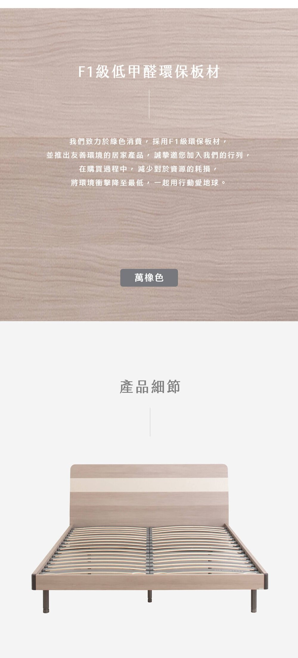 • 經典萬橡木紋設計:溫暖自然色調,輕鬆融入各式居家風格,營造放鬆舒眠氛圍。