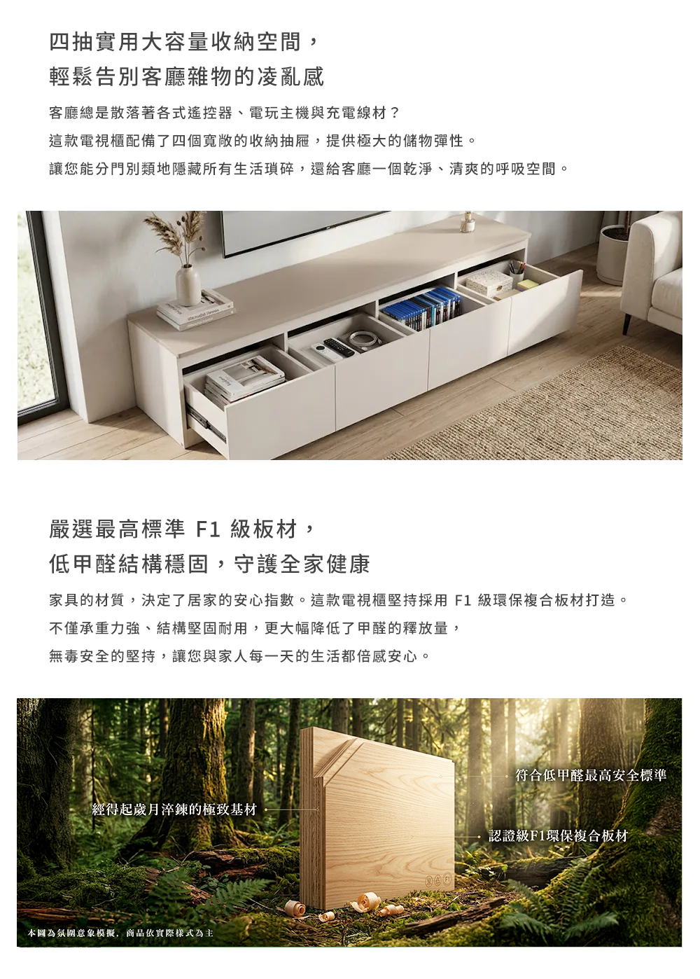 ・ 嚴選F1級環保複合板材!符合低甲醛最高安全標準,結構堅固耐用,讓全家人安心使用。
