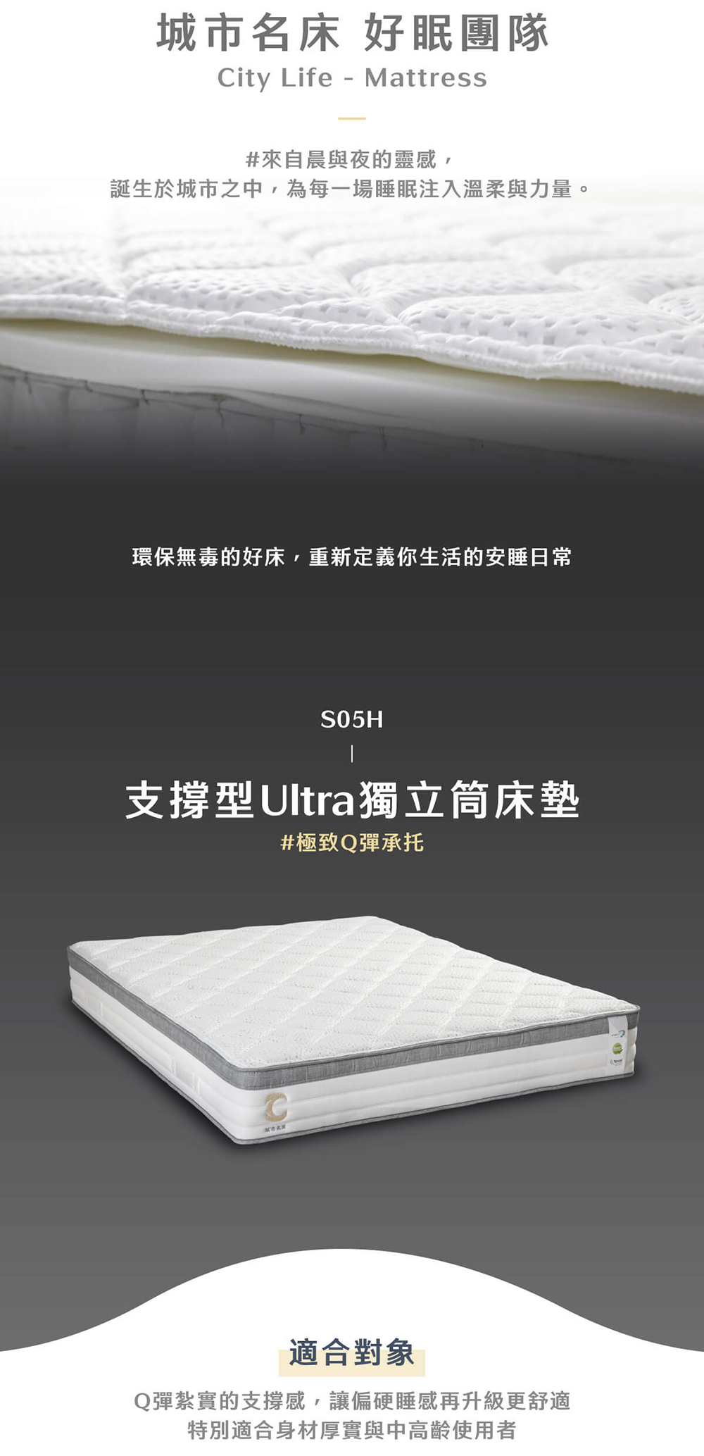 ・中鋼獨立筒:依線徑分軟硬,支撐佳(10年保固)。