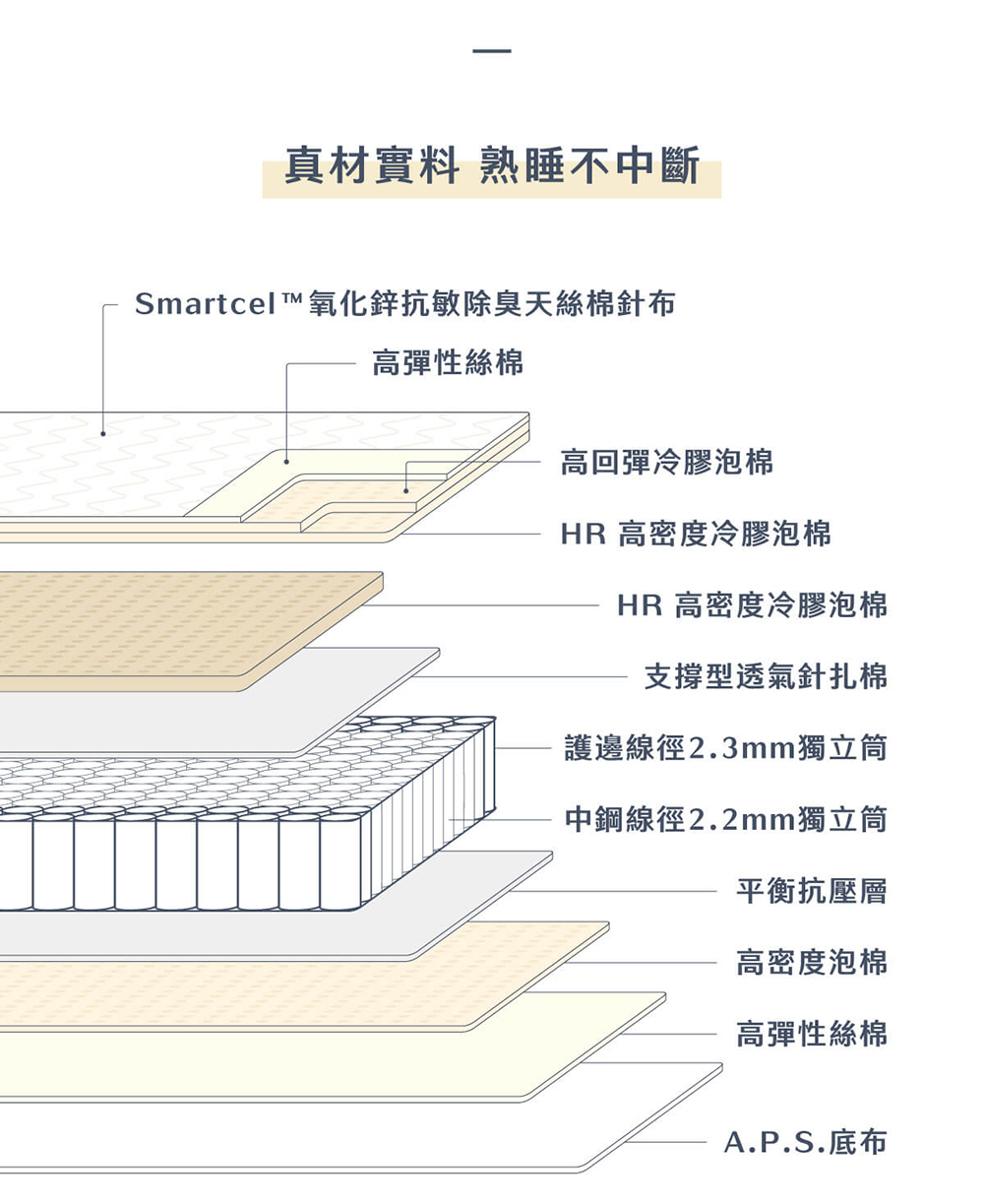 ・HR冷膠泡棉:高回彈支撐,減壓不干擾。