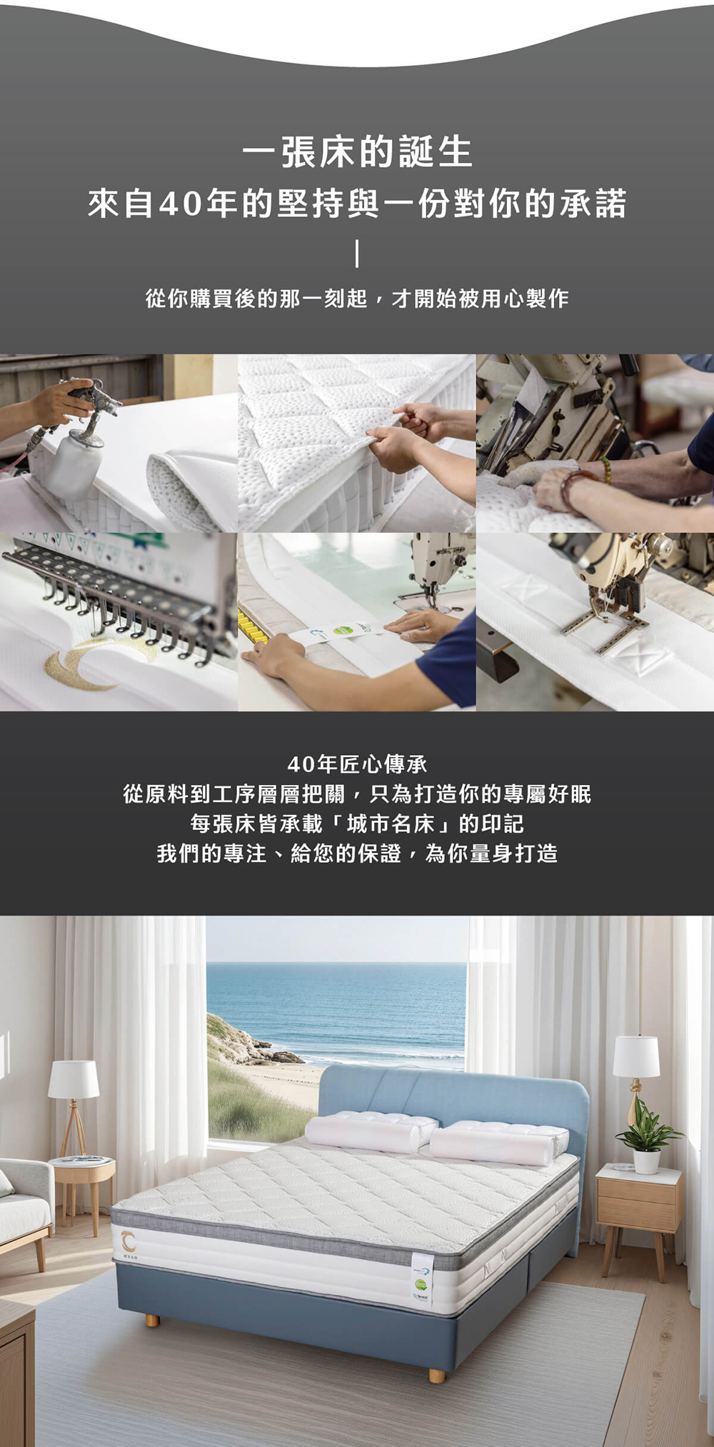 機能型睡眠設計,結合德國專利與台灣製造,兼具支撐與透氣,打造舒適好眠體驗。