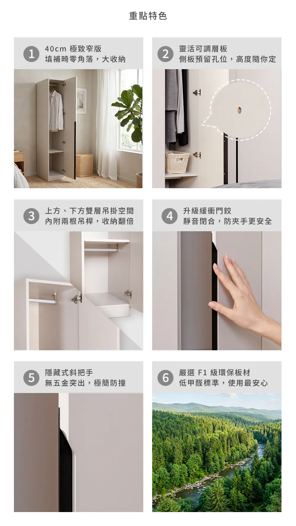 40cm 極致窄版單門衣櫃,完美填補臥室畸零角落,空間利用最大化!