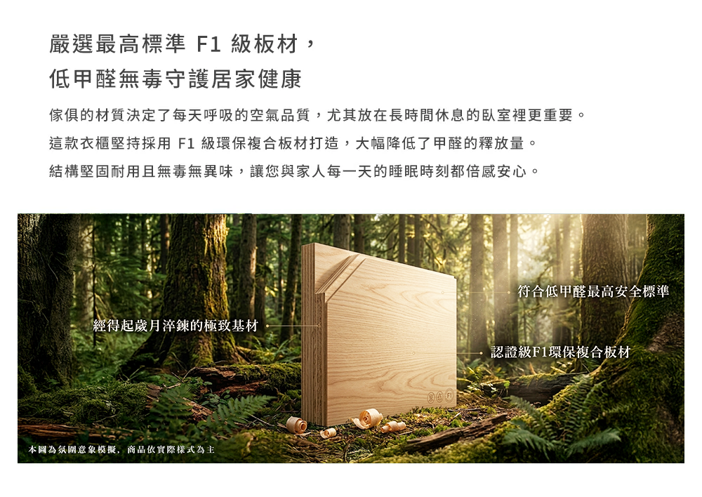 ・ 嚴選最高標準F1級板材!低甲醛無毒無味,放在每天睡覺的臥室最安心。